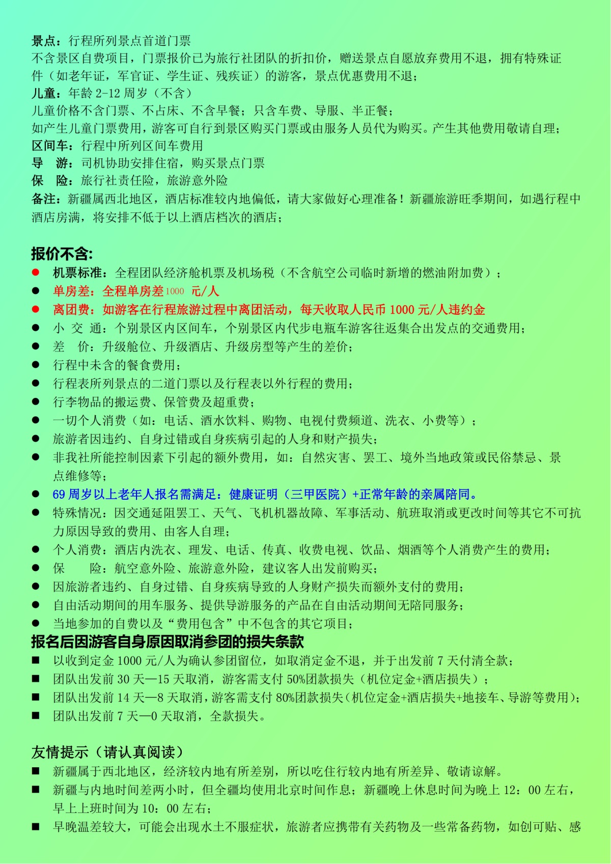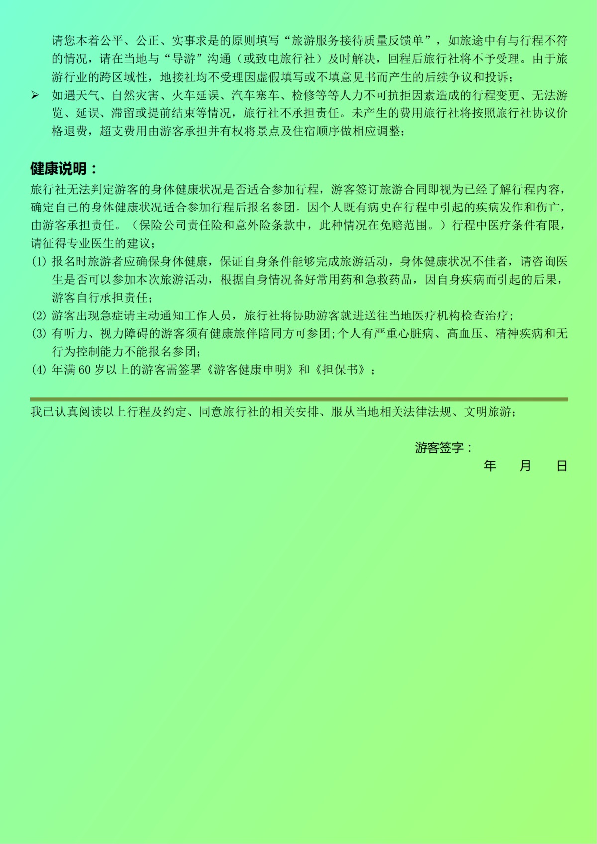 3、司机培训上岗,提供购买门票、安排住宿、景点简单介绍及途中衔接工作,本行程无导游服务;