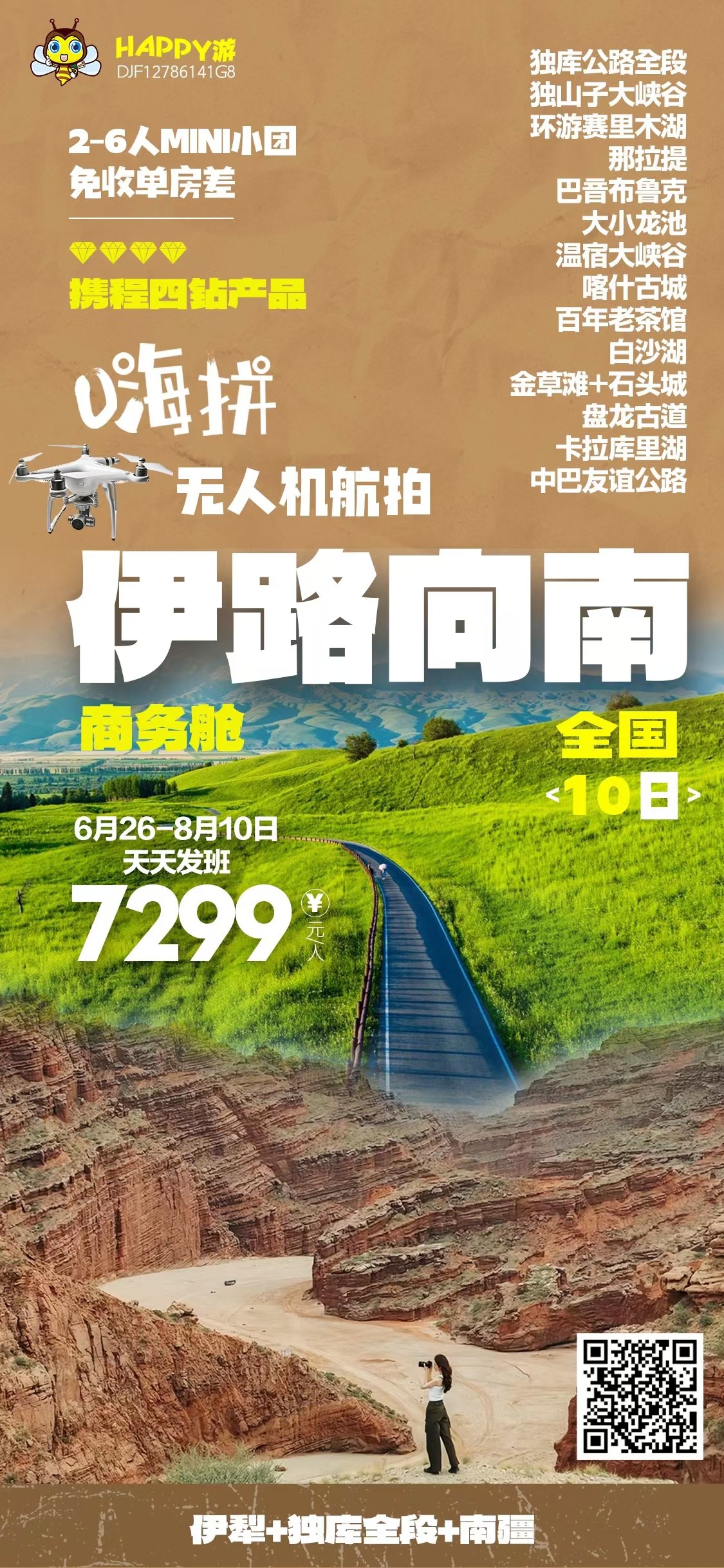 配备无人机: 定点航拍 (最少三段视频, 新疆专属回忆)