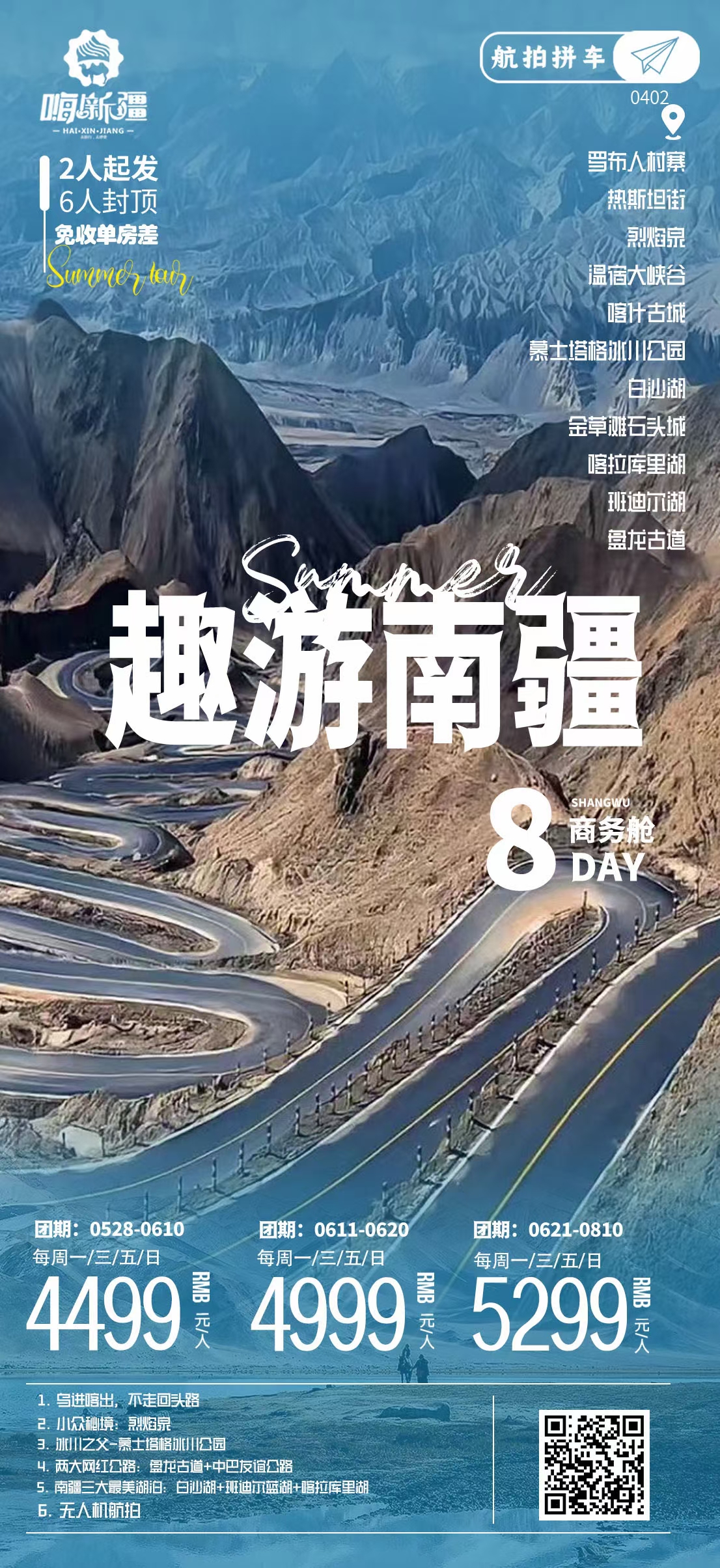 个性小团:2人起发,6人封顶,单人拼住不收单房差,小团旅行更加轻松愉快